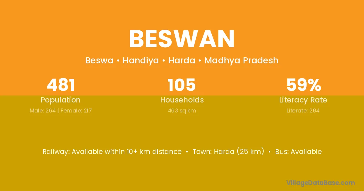 Beswan village is located in the Handiya Tehsil of the Harda district in Madhya Pradesh .