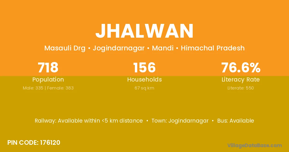 Jhalwan village has a total population of 1,207 people, of which 640 are males and 567 are females.