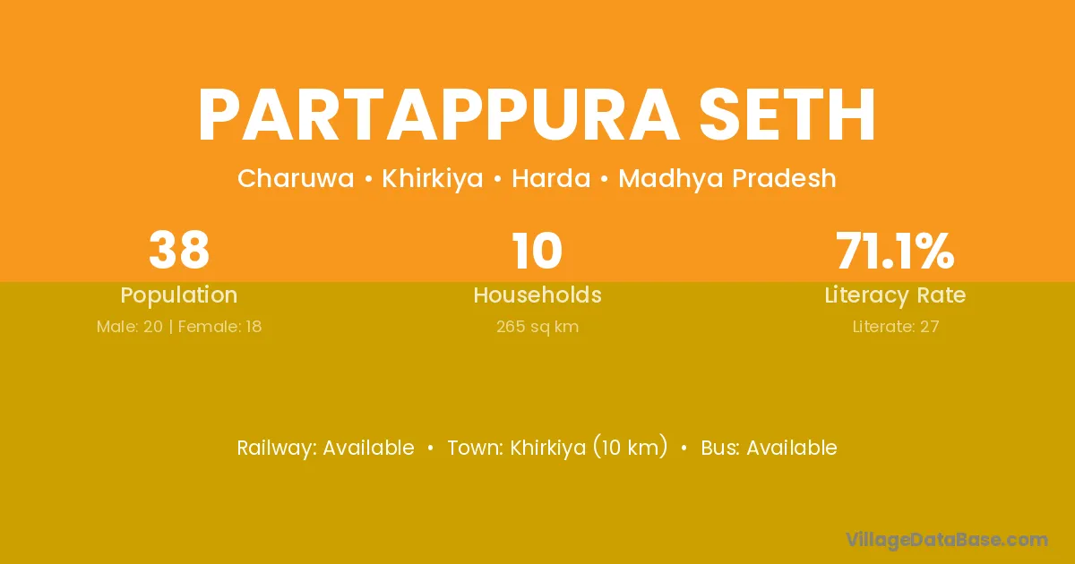 Khirkiya (10 km) is the nearest town to Partappura Seth village for major economic activities and is located approximately 10 km away.