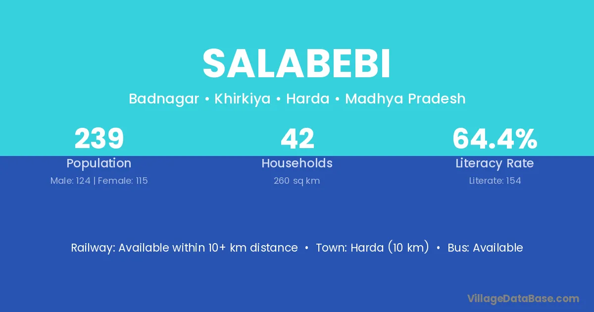 Harda (10 km) is the nearest town to Salabebi village for major economic activities and is located approximately 10 km away.