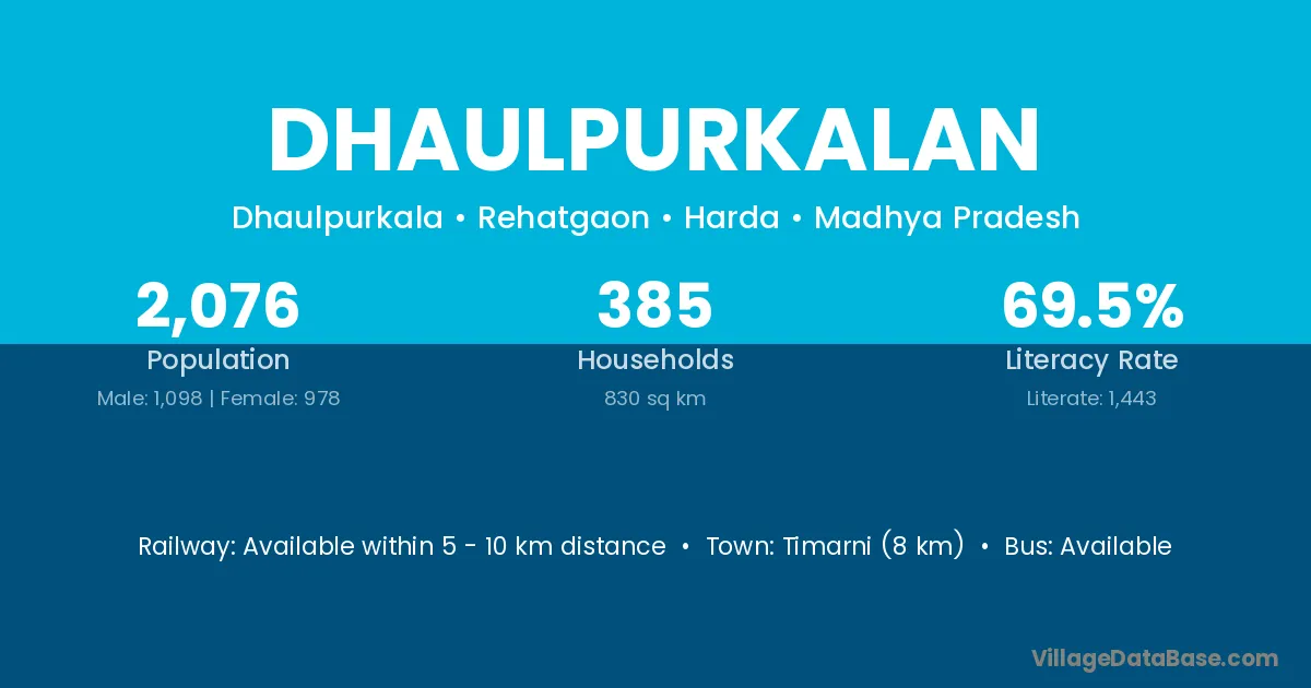 Timarni (8 km) is the nearest town to Dhaulpurkalan village for major economic activities and is located approximately 8 km away.