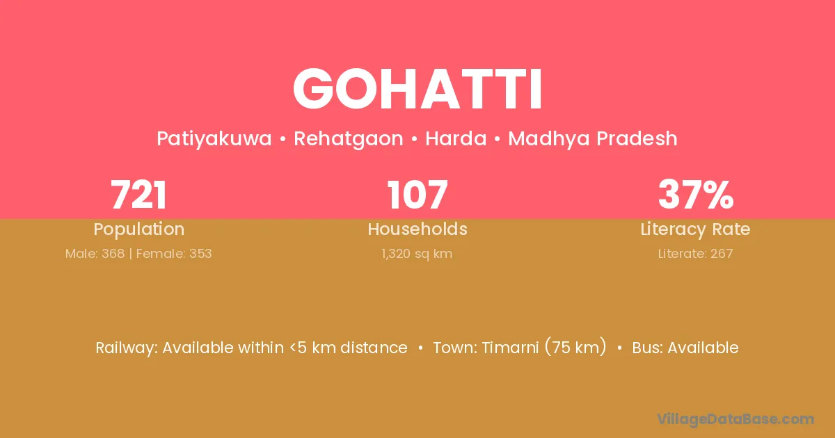 Gohatti village has a total population of 721 people, of which 368 are males and 353 are females.