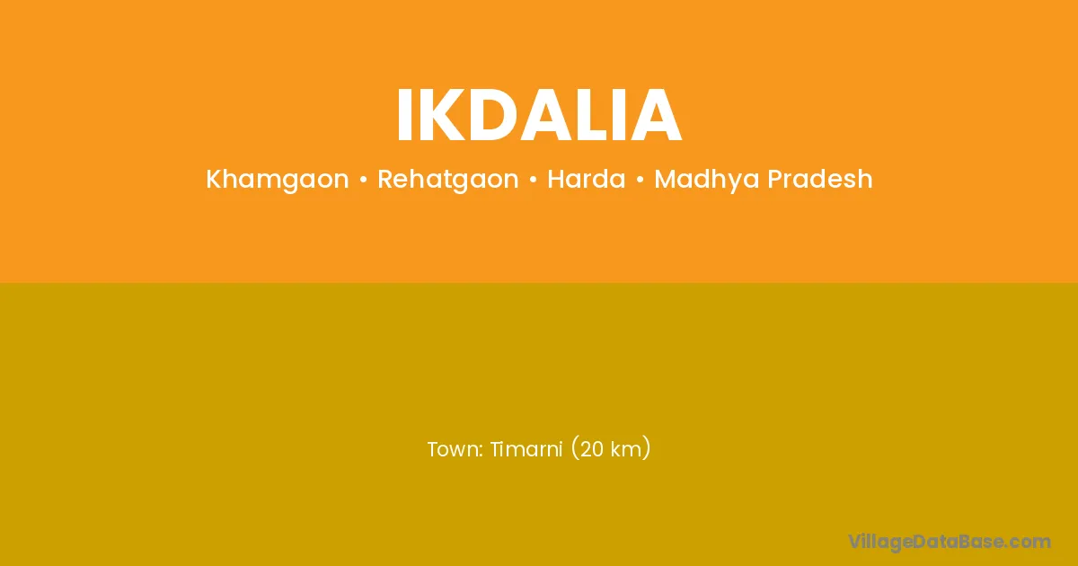 Timarni (20 km) is the nearest town to Ikdalia village for major economic activities and is located approximately 20 km away.