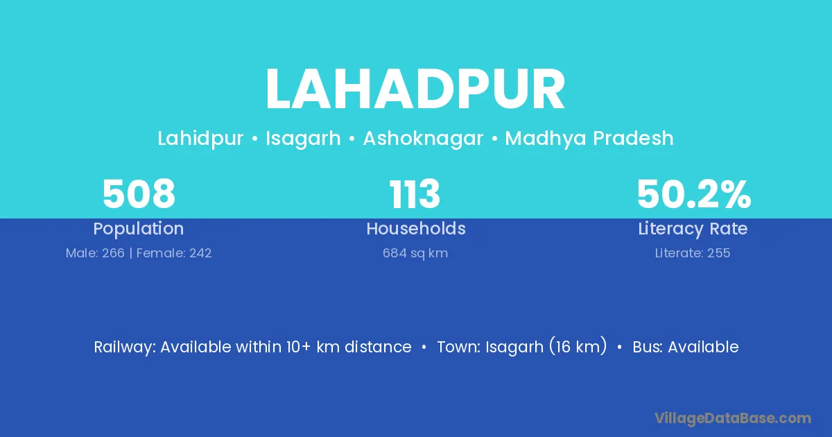 Timarni (3 km) is the nearest town to Lahadpur village for major economic activities and is located approximately 3 km away.