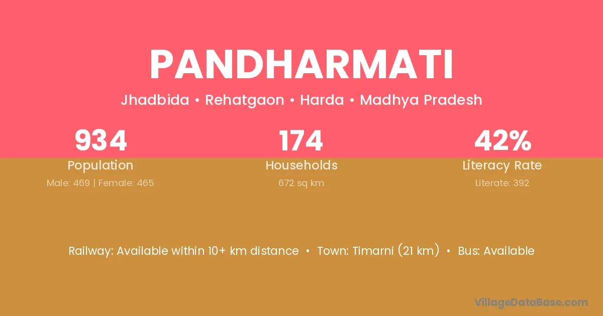 Timarni (21 km) is the nearest town to Pandharmati village for major economic activities and is located approximately 21 km away.