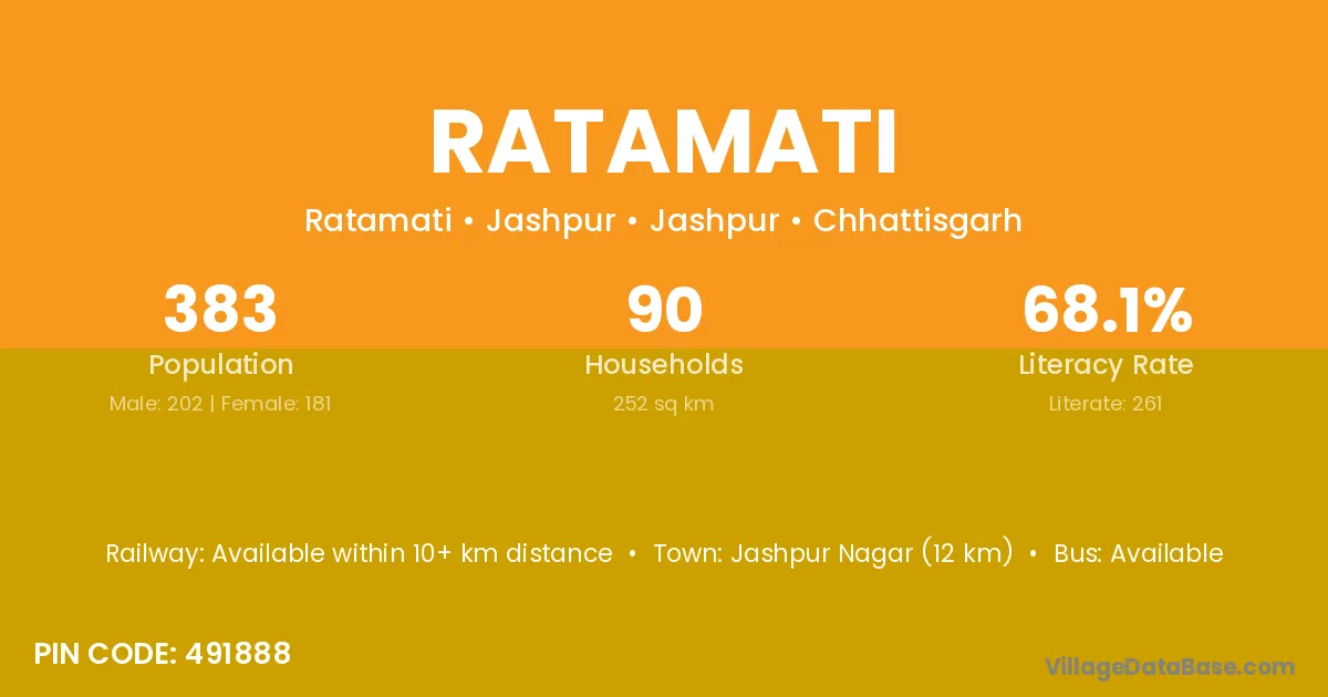 Harda (112 km) is the nearest town to Ratamati village for major economic activities and is located approximately 112 km away.
