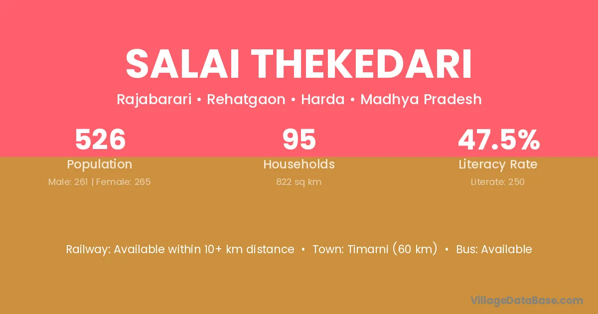 Timarni (60 km) is the nearest town to Salai Thekedari village for major economic activities and is located approximately 60 km away.