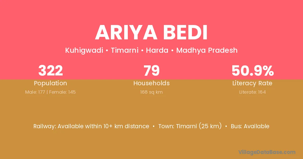 Ariya Bedi village is located in the Timarni Tehsil of the Harda district in Madhya Pradesh .