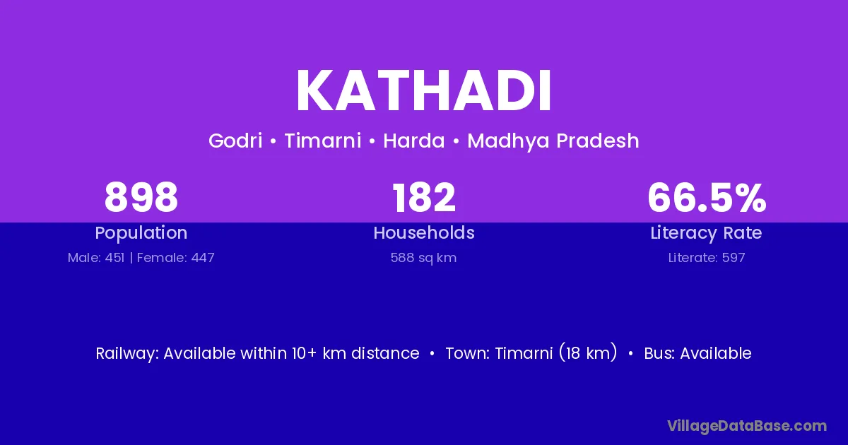 Kathadi village has a total population of 898 people, of which 451 are males and 447 are females.