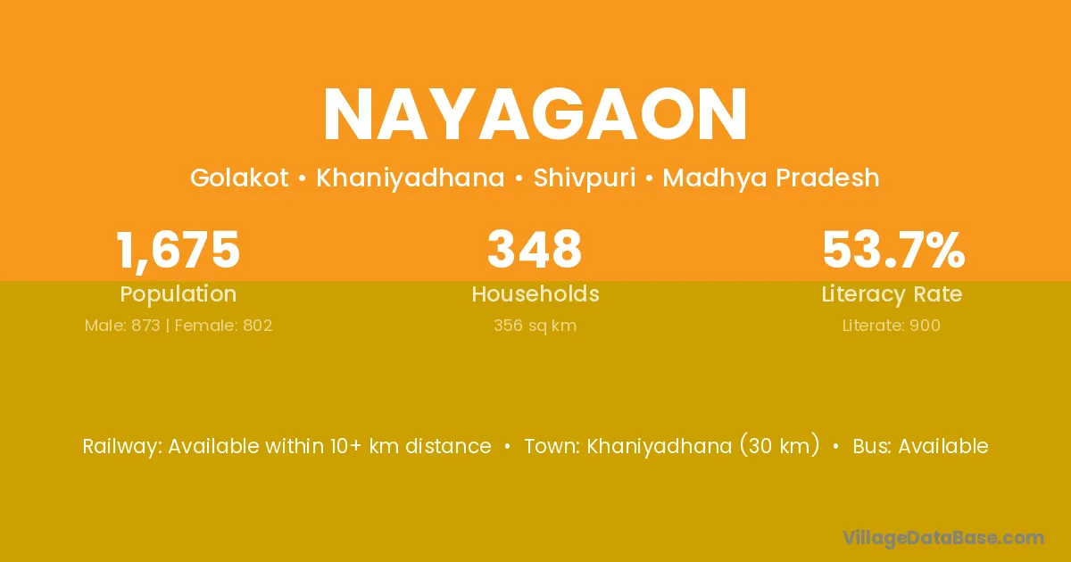 Timarni (22 km) is the nearest town to Nayagaon village for major economic activities and is located approximately 22 km away.