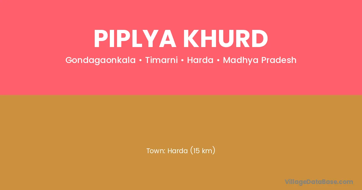 Harda (15 km) is the nearest town to Piplya Khurd village for major economic activities and is located approximately 15 km away.