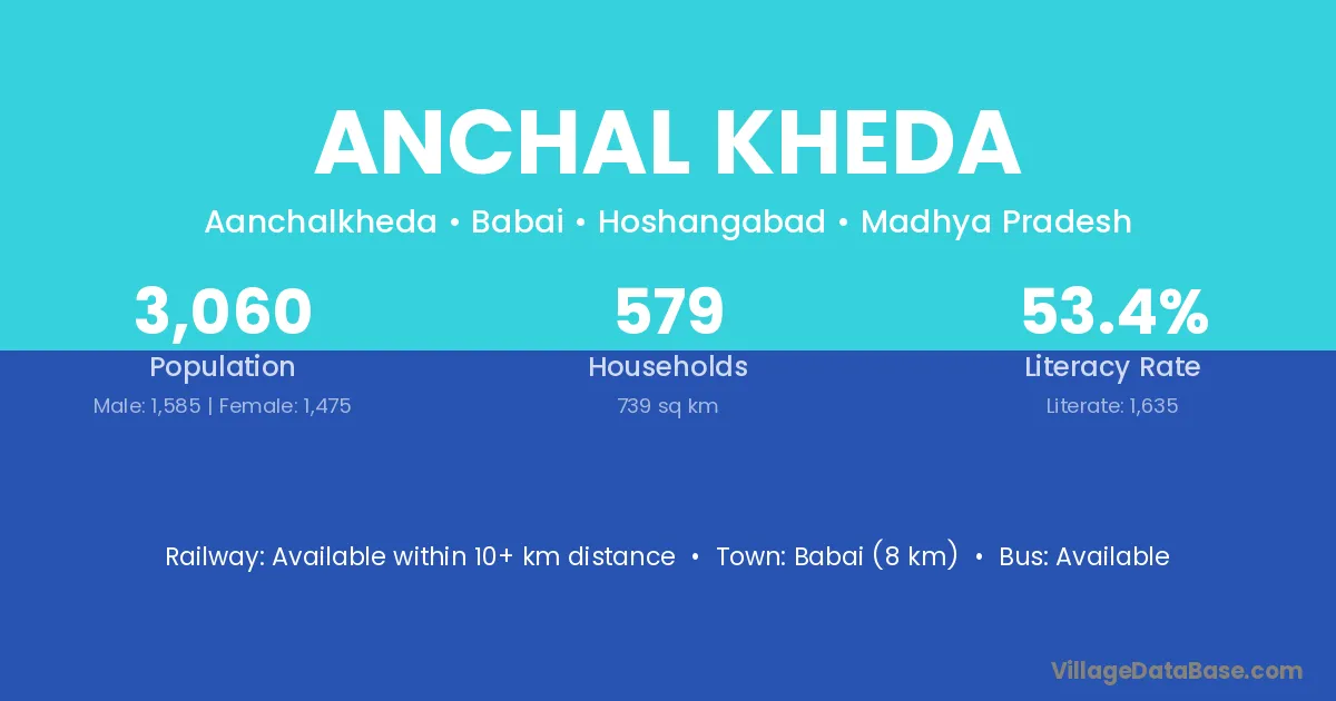 Babai (8 km) is the nearest town to Anchal Kheda village for major economic activities and is located approximately 8 km away.