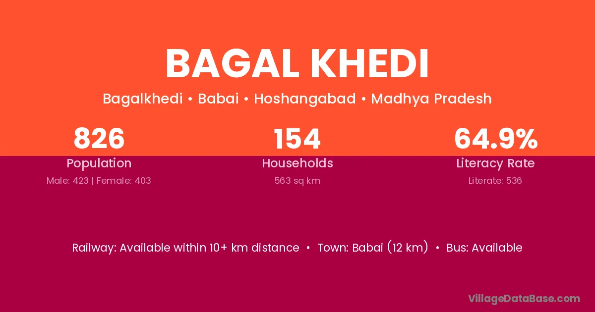 Babai (12 km) is the nearest town to Bagal Khedi village for major economic activities and is located approximately 12 km away.