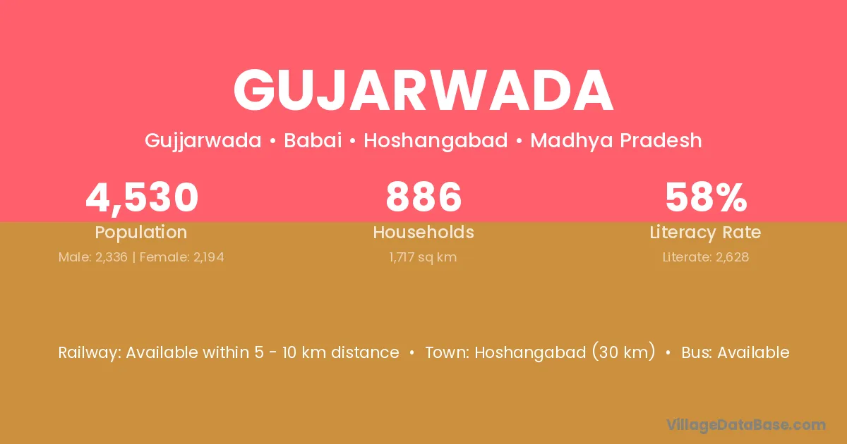 Hoshangabad (30 km) is the nearest town to Gujarwada village for major economic activities and is located approximately 30 km away.