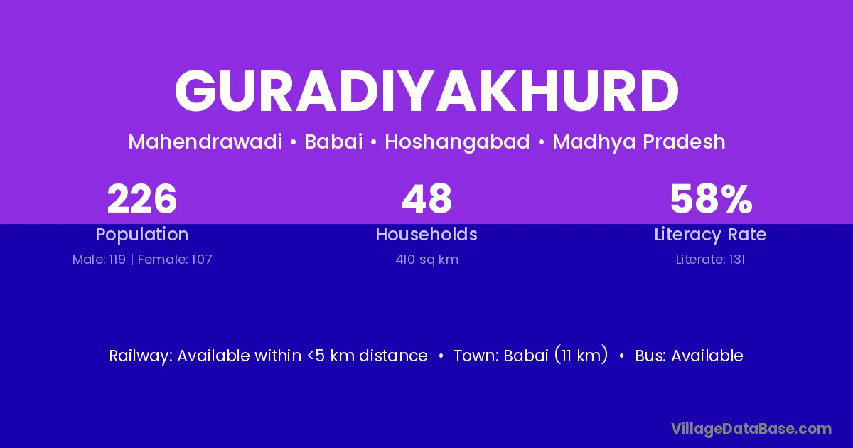 Babai (11 km) is the nearest town to Guradiyakhurd village for major economic activities and is located approximately 11 km away.