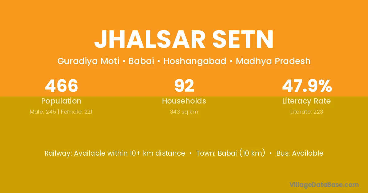 Jhalsar Setn village has a total population of 466 people, of which 245 are males and 221 are females.