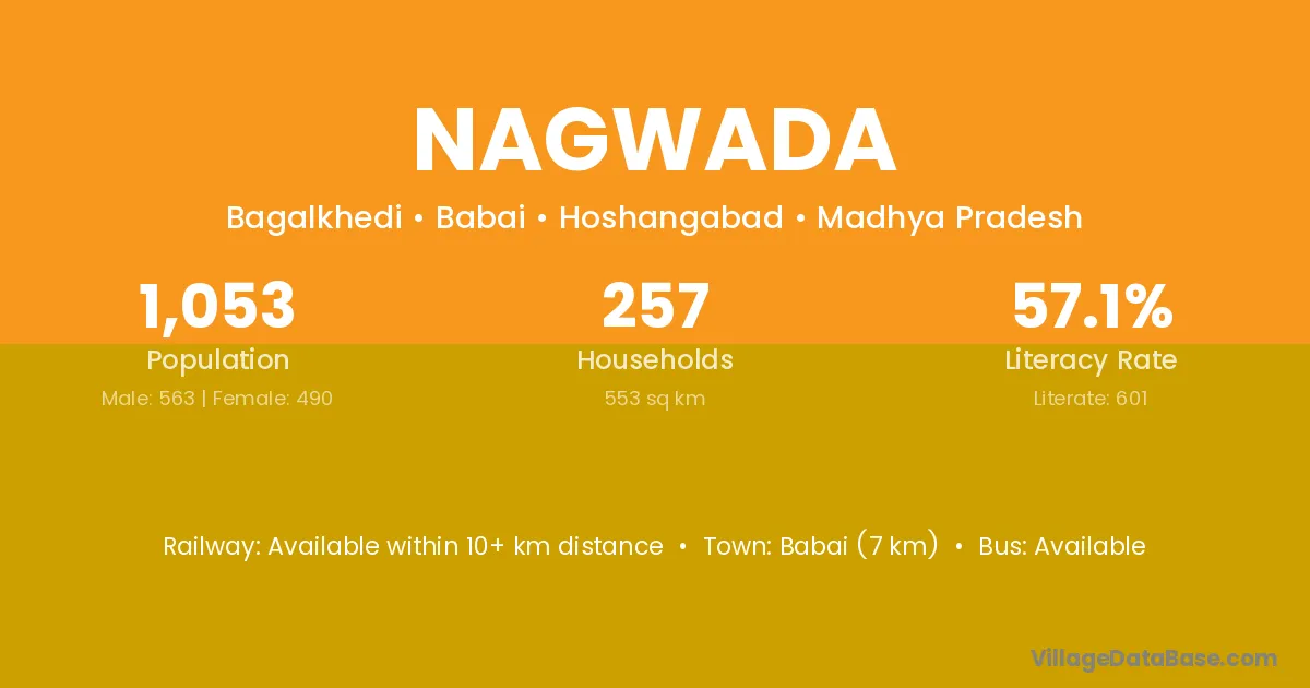 Nagwada village has a total population of 1,053 people, of which 563 are males and 490 are females.