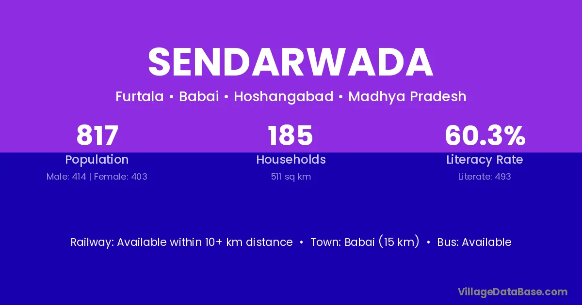 Babai (15 km) is the nearest town to Sendarwada village for major economic activities and is located approximately 15 km away.