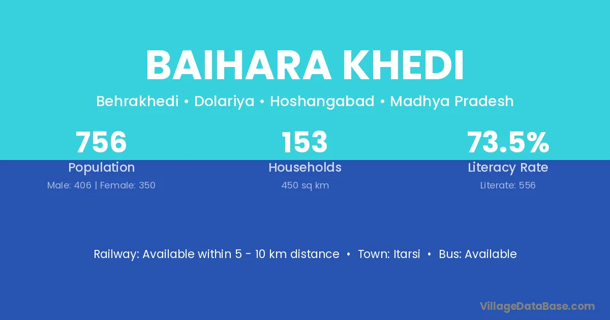 Itarsi is the nearest town to Baihara Khedi village for major economic activities