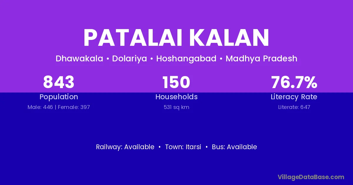 Itarsi is the nearest town to Patalai Kalan village for major economic activities