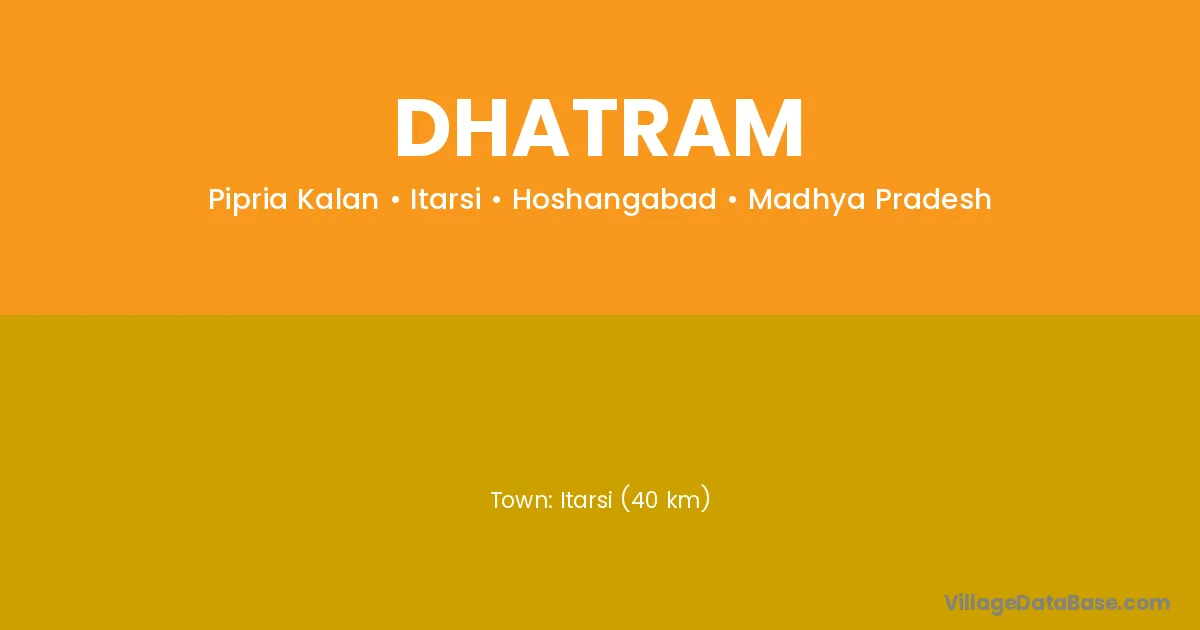 Itarsi (40 km) is the nearest town to Dhatram village for major economic activities and is located approximately 40 km away.
