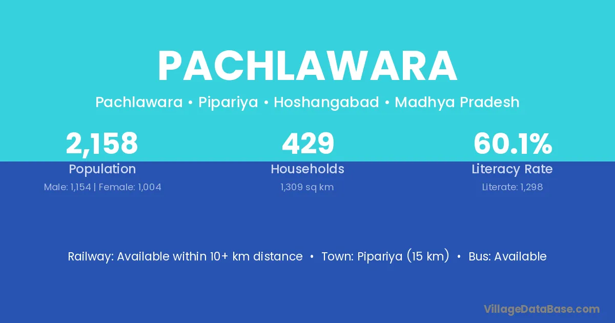 Pipariya (15 km) is the nearest town to Pachlawara village for major economic activities and is located approximately 15 km away.
