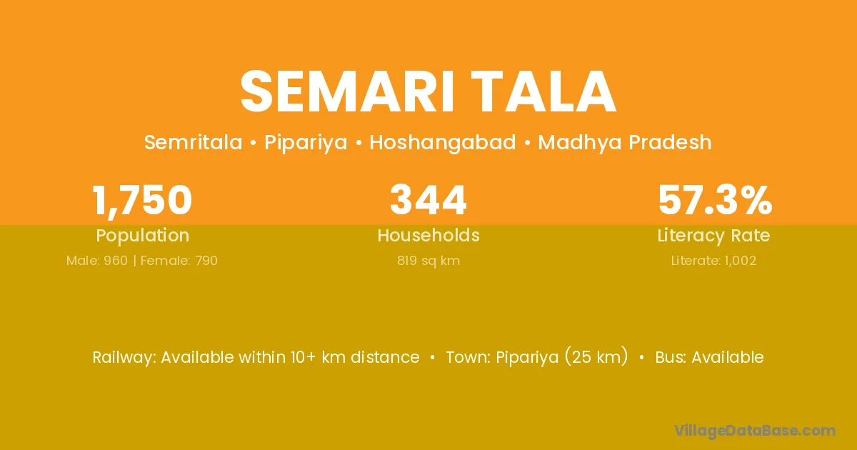 Pipariya (25 km) is the nearest town to Semari Tala village for major economic activities and is located approximately 25 km away.
