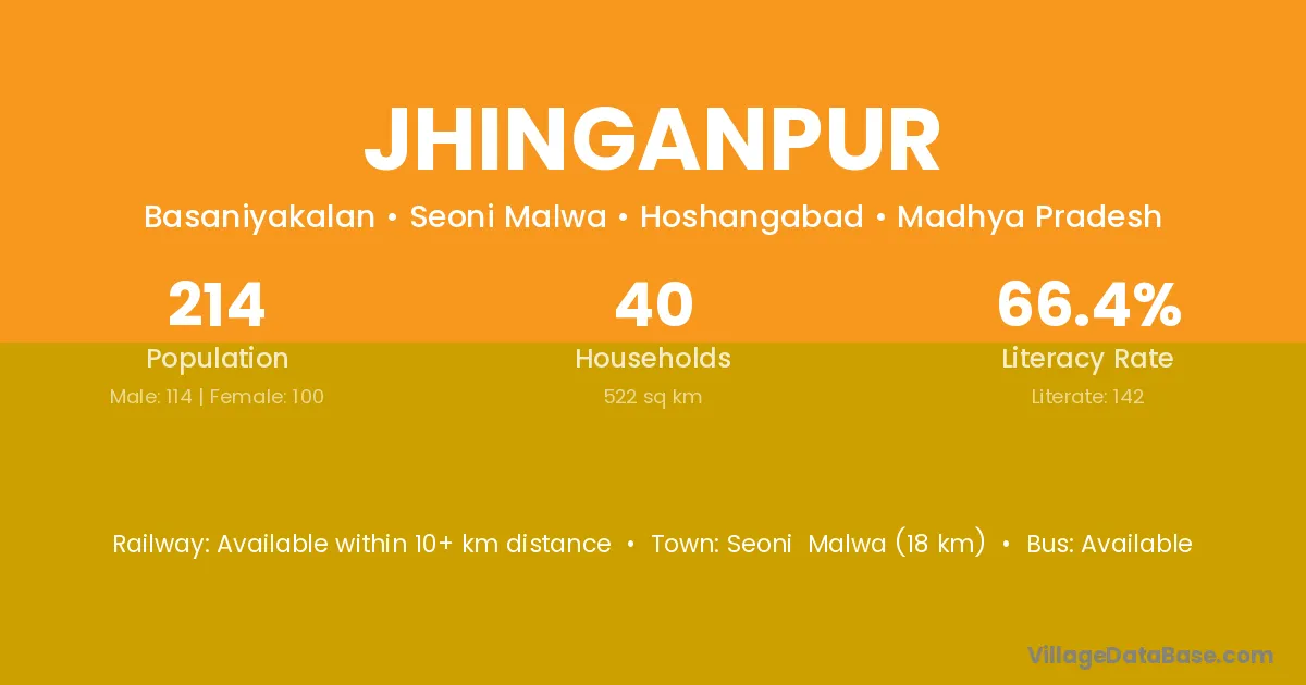 Seoni Malwa (18 km) is the nearest town to Jhinganpur village for major economic activities and is located approximately 18 km away.