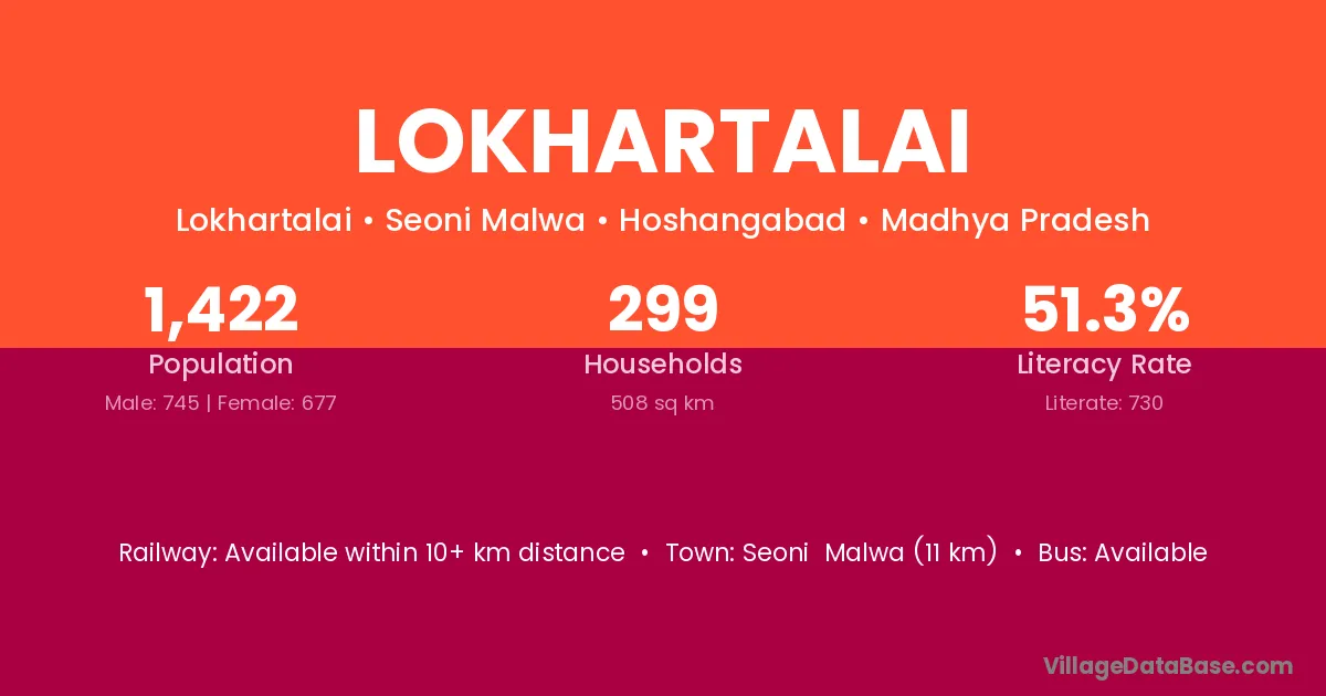 Seoni Malwa (11 km) is the nearest town to Lokhartalai village for major economic activities and is located approximately 11 km away.