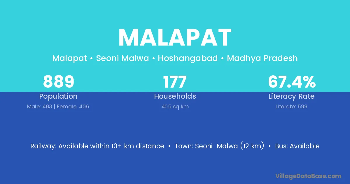 Seoni Malwa (12 km) is the nearest town to Malapat village for major economic activities and is located approximately 12 km away.