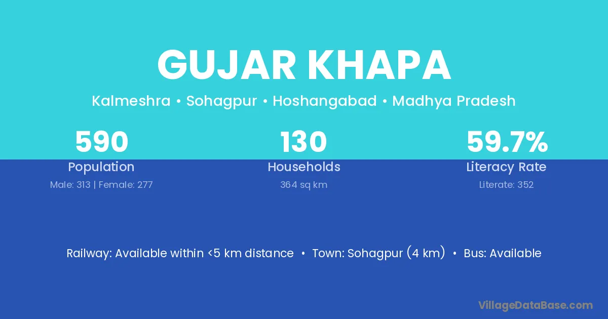Sohagpur (4 km) is the nearest town to Gujar Khapa village for major economic activities and is located approximately 4 km away.