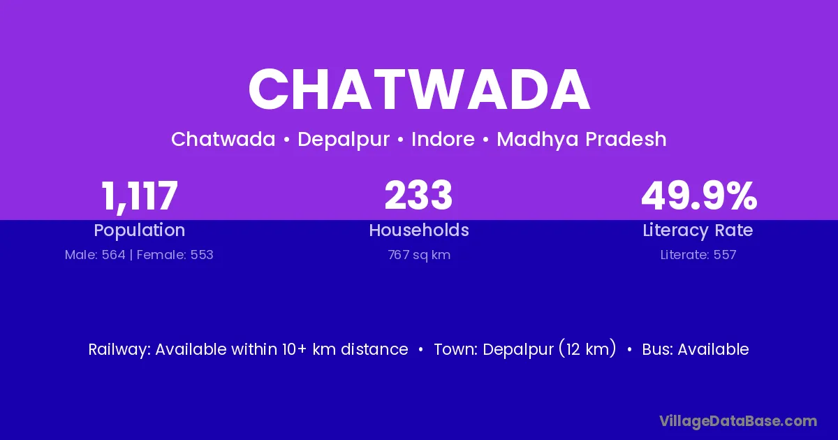 Chatwada village has a total population of 1,117 people, of which 564 are males and 553 are females.
