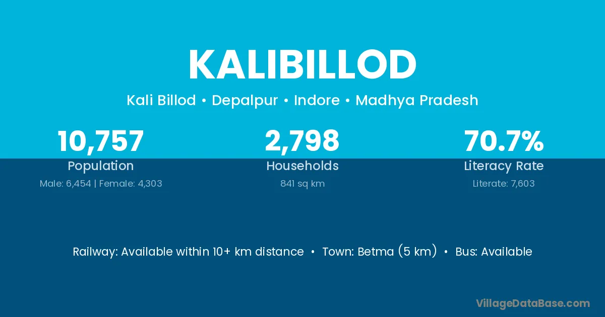 Betma (5 km) is the nearest town to Kalibillod village for major economic activities and is located approximately 5 km away.