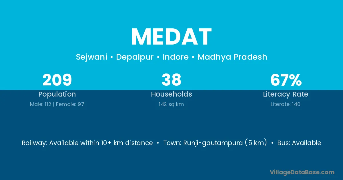 Runji-gautampura (5 km) is the nearest town to Medat village for major economic activities and is located approximately 5 km away.