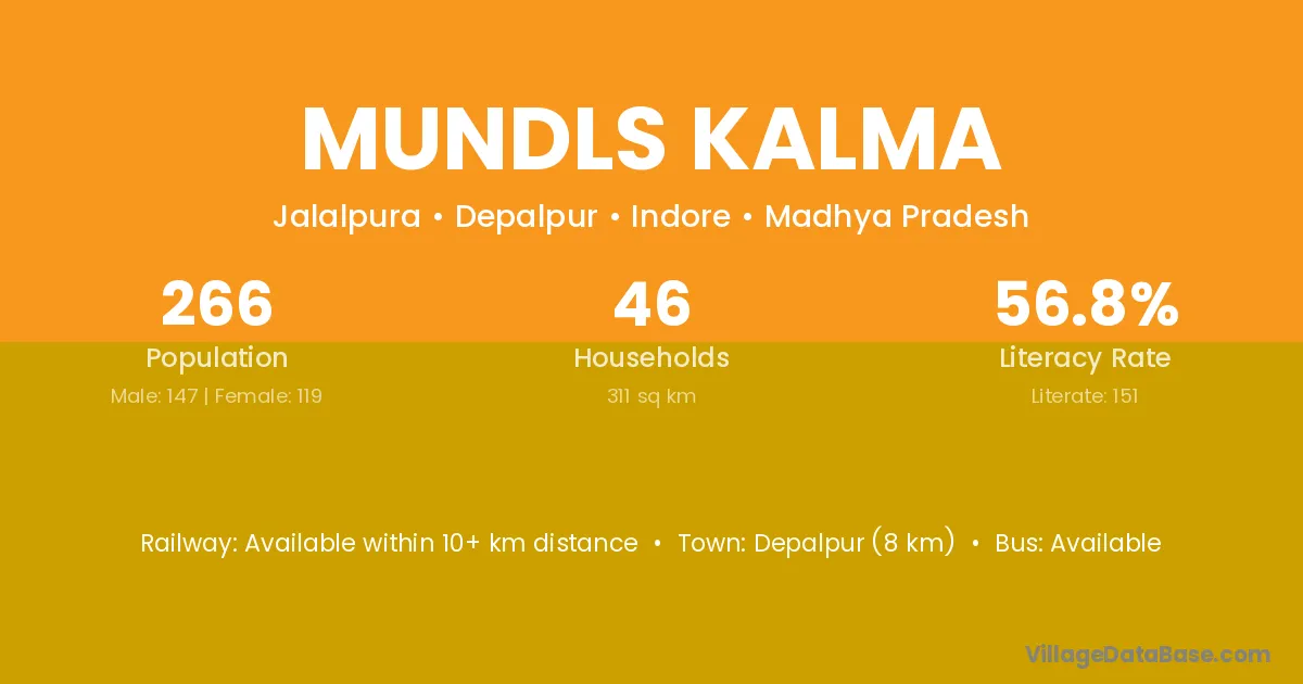 Depalpur (8 km) is the nearest town to Mundls Kalma village for major economic activities and is located approximately 8 km away.