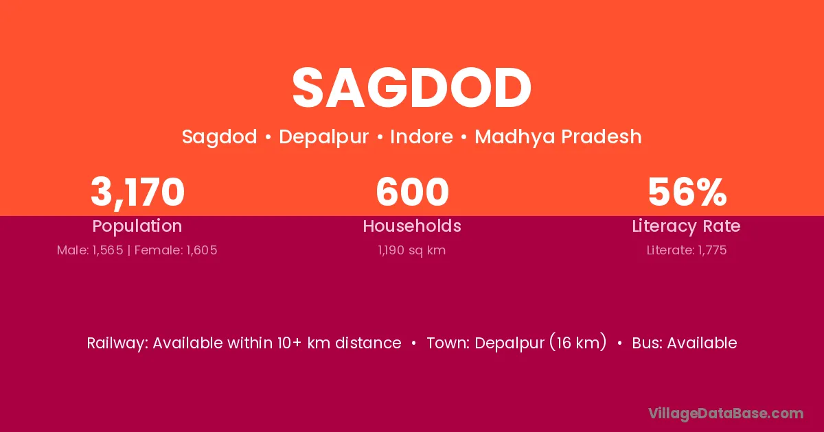 Depalpur (16 km) is the nearest town to Sagdod village for major economic activities and is located approximately 16 km away.