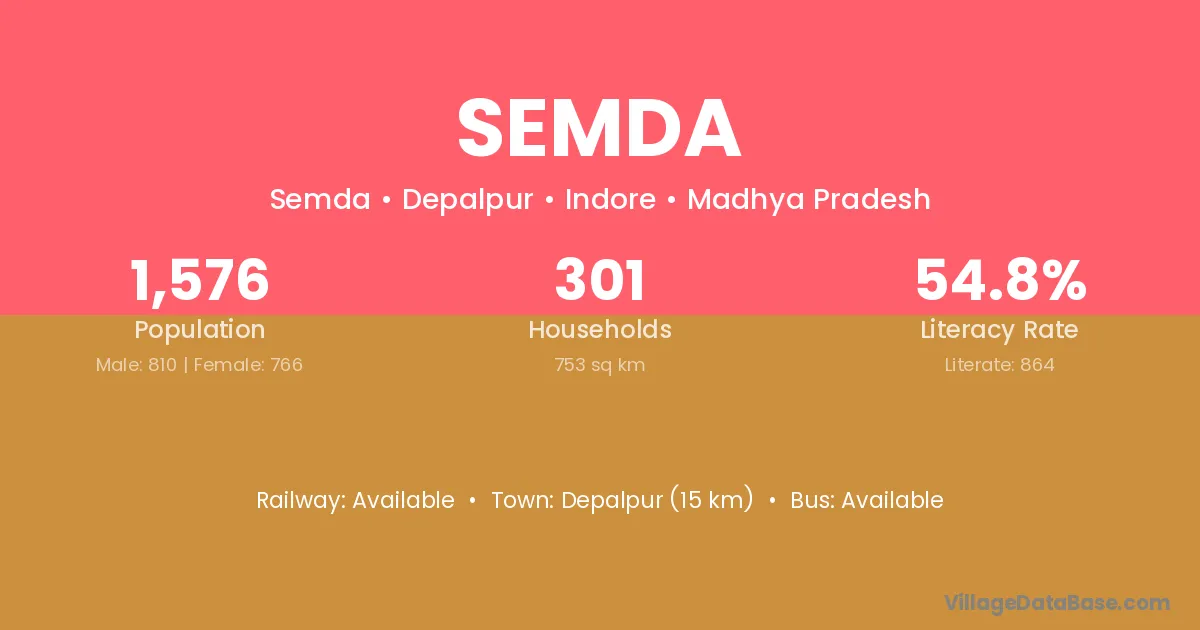 Depalpur (15 km) is the nearest town to Semda village for major economic activities and is located approximately 15 km away.