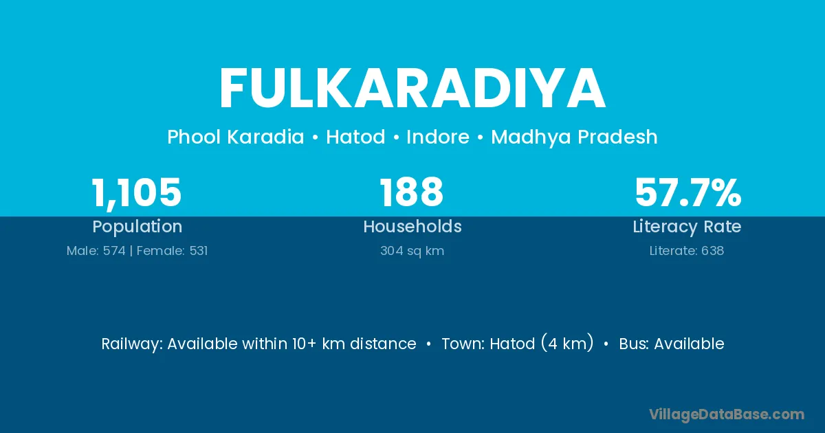 Hatod (4 km) is the nearest town to Fulkaradiya village for major economic activities and is located approximately 4 km away.