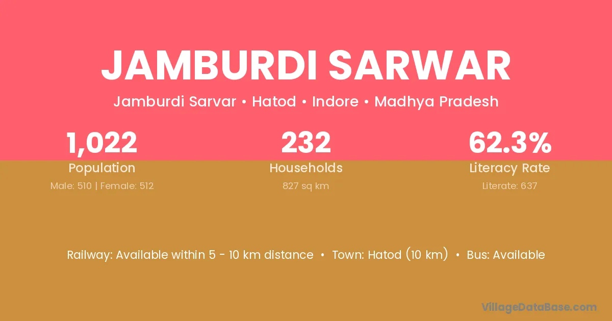 Hatod (10 km) is the nearest town to Jamburdi Sarwar village for major economic activities and is located approximately 10 km away.