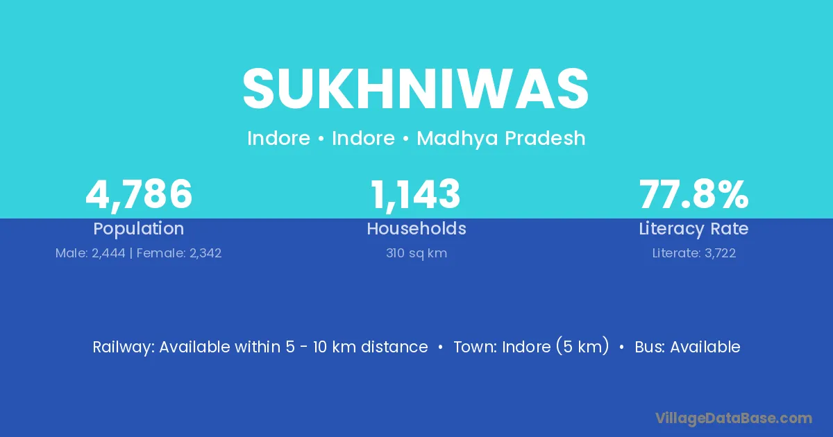 Indore (5 km) is the nearest town to Sukhniwas village for major economic activities and is located approximately 5 km away.