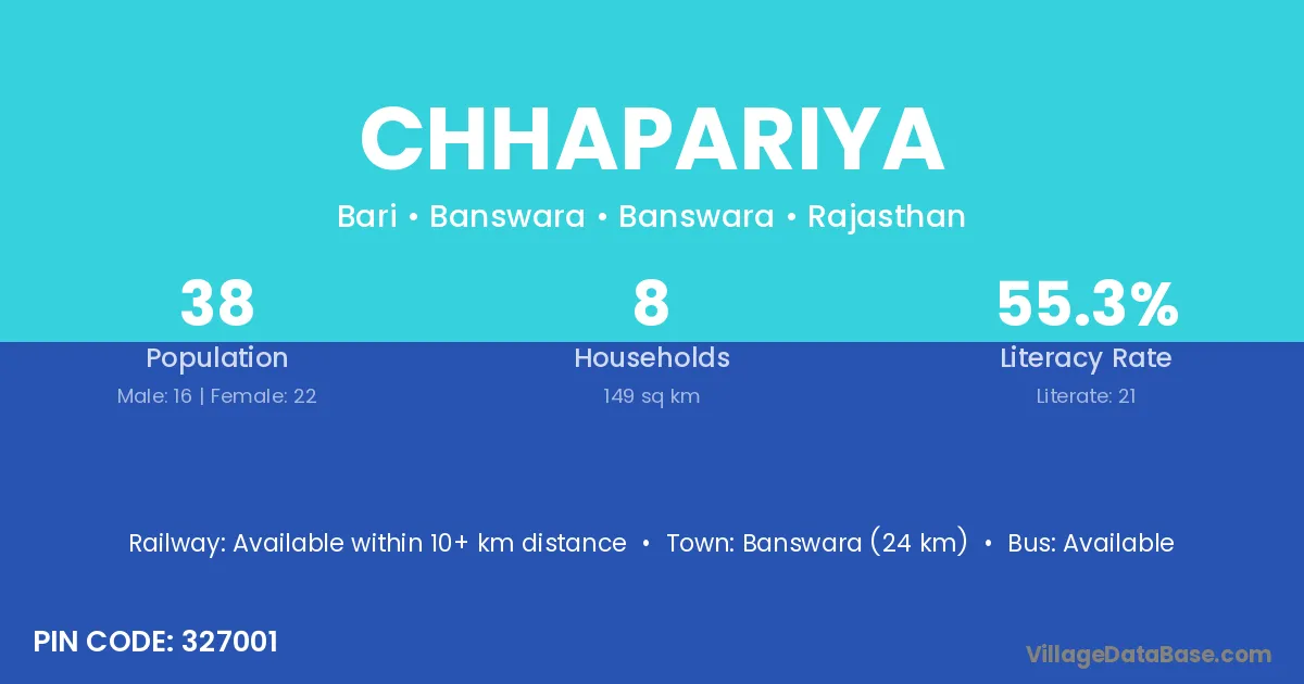 Mhowgaon (37 km) is the nearest town to Chhapariya village for major economic activities and is located approximately 37 km away.