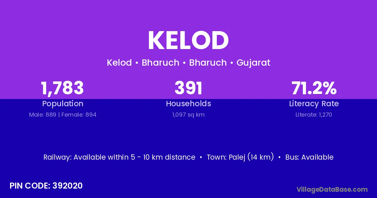 Kelod village has a total population of 3,283 people, of which 1,690 are males and 1,593 are females.