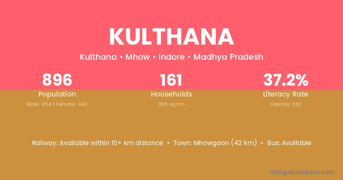 Mhowgaon (42 km) is the nearest town to Kulthana village for major economic activities and is located approximately 42 km away.