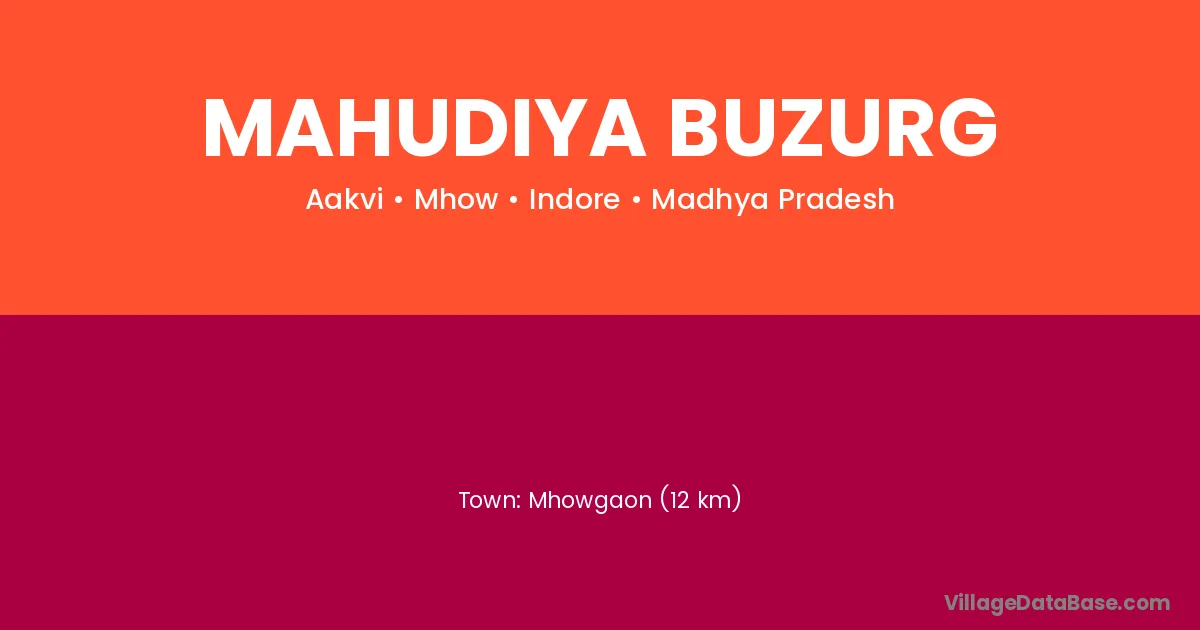 Mhowgaon (12 km) is the nearest town to Mahudiya Buzurg village for major economic activities and is located approximately 12 km away.
