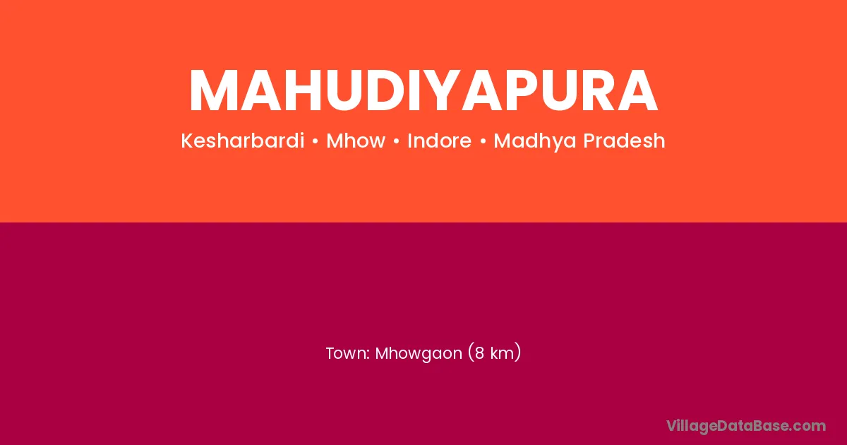 Mhowgaon (8 km) is the nearest town to Mahudiyapura village for major economic activities and is located approximately 8 km away.