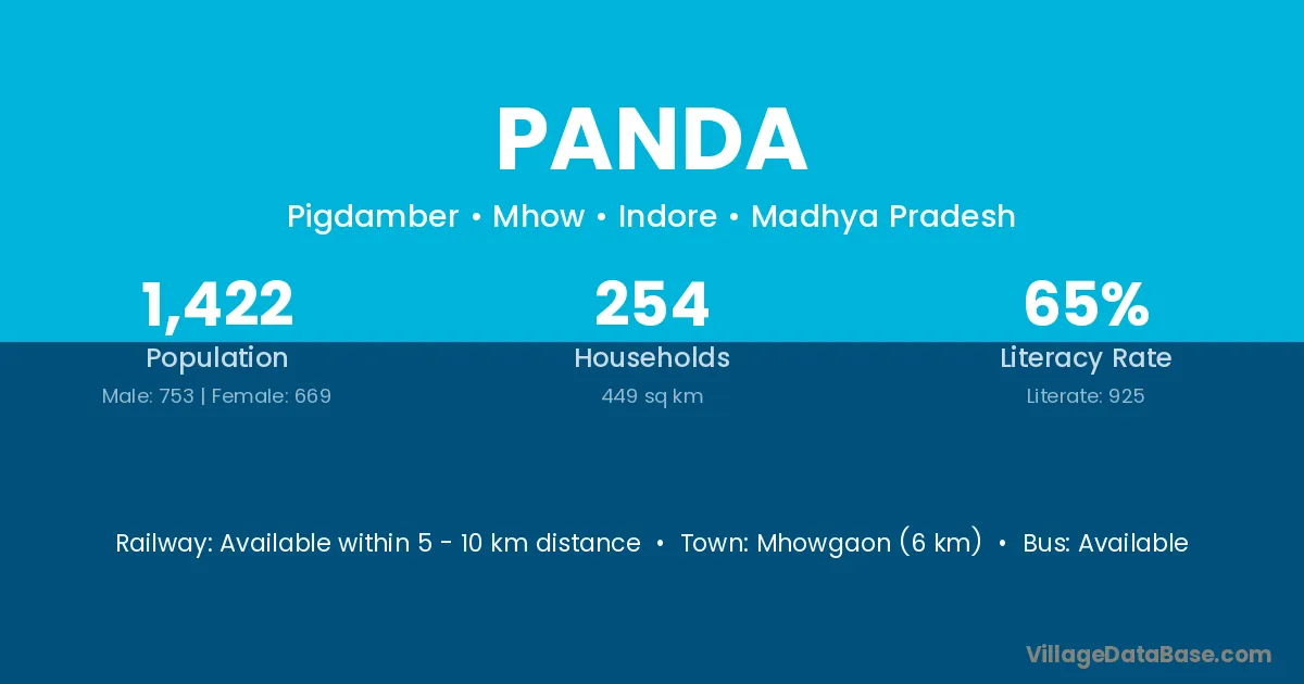 Mhowgaon (6 km) is the nearest town to Panda village for major economic activities and is located approximately 6 km away.