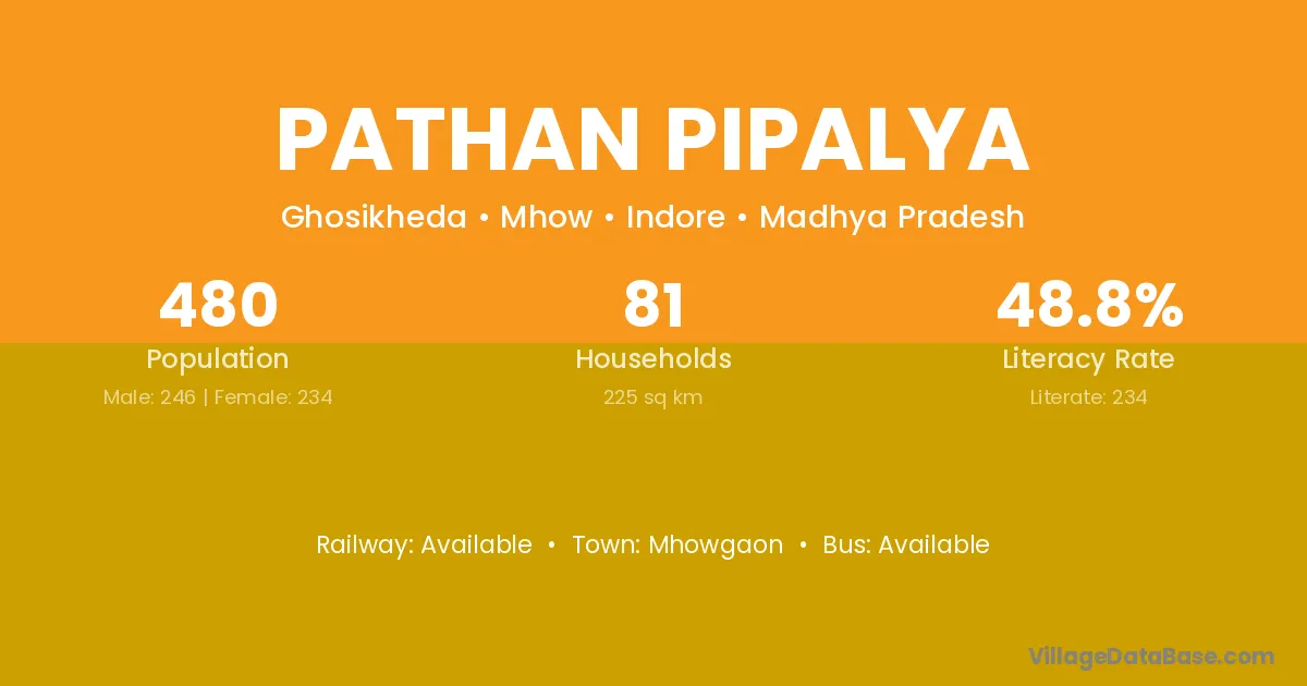 Pathan Pipalya village has a total population of 480 people, of which 246 are males and 234 are females.