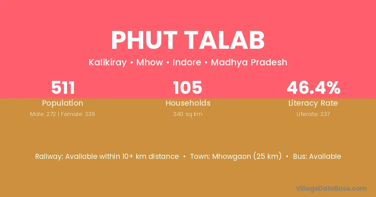 Mhowgaon (25 km) is the nearest town to Phut Talab village for major economic activities and is located approximately 25 km away.
