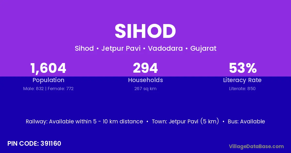 Manpur (8 km) is the nearest town to Sihod village for major economic activities and is located approximately 8 km away.