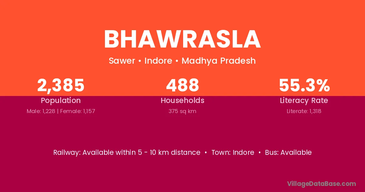 Indore is the nearest town to Bhawrasla village for major economic activities
